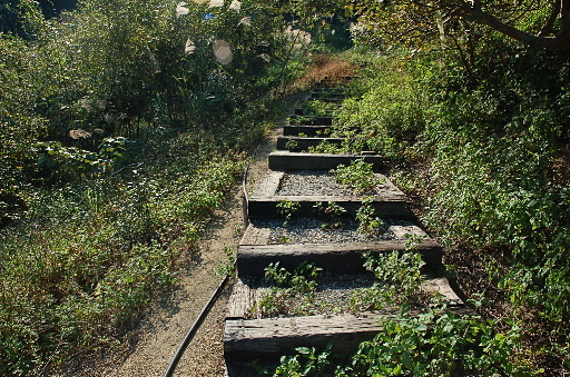 果園中石階,有點陡峭,我被抱怨選錯了路,其實路況還好,只是比不上好走的登山步道而已。經過另一條石階後往下進入樹林,過溪後轉為山腰路。H283m |