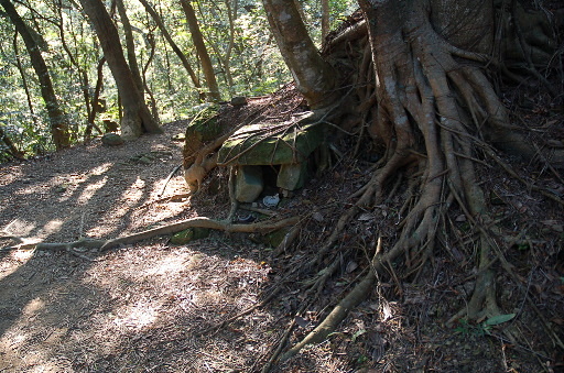 石棚土地公,這條步道其實是越嶺往新光路清龍宮的古道,人稱炮子崙古道,而目前主要的步道在越嶺鞍部轉向上走,直到新光路二段74巷。H176m |