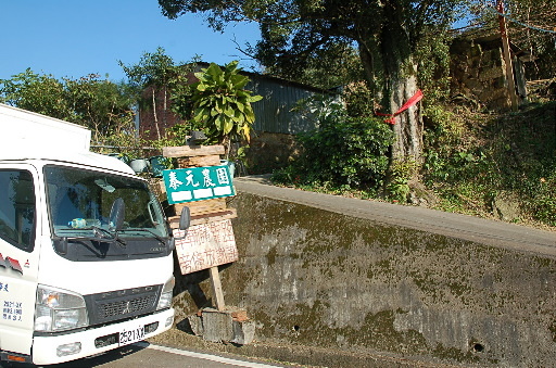 泰元農園,回炮子崙的這條路並非正式步道,所以沒有指標,亦少登山路條,路面上有『←林』噴漆,應該是山友指示往林家草厝吧?泰元農園看起來是平凡的農家,回炮子崙的路從屋旁的石階往上。這條路前段會經過農地,叉路較多,大致上循著主線直行即可,不遠處可見猴山岳山腰的電塔,可為目標,但實際上步道不經過電塔。H336m |