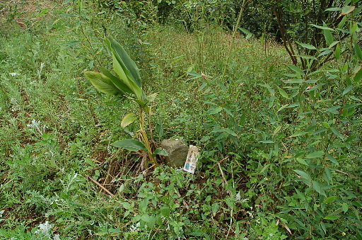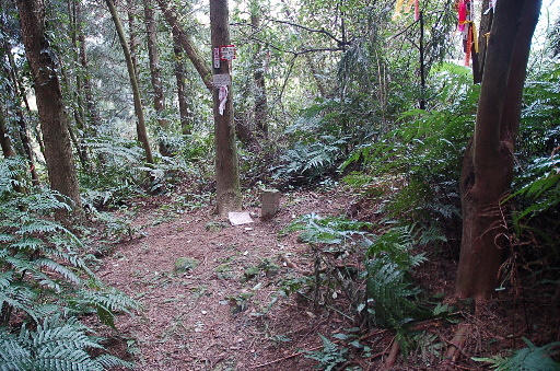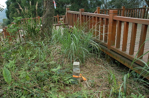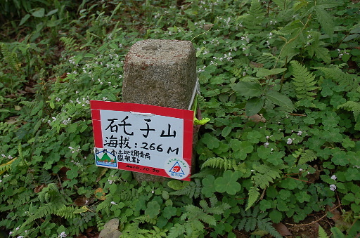 矺子山,266m,土地調查局圖根點。基石其實就在果園最高處旁邊的樹林內,果園中果樹稀疏,並沒有結果,地主純粹不爽登山客罷了。回程在中途高點發現一根無名基石。H274m |