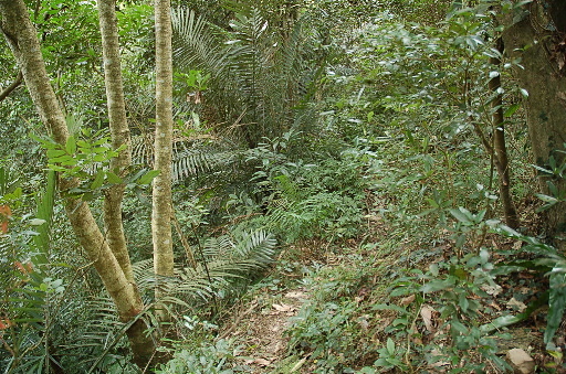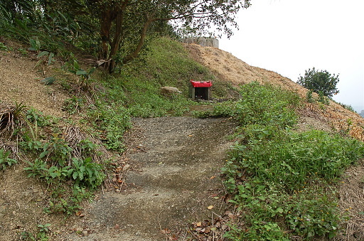 薯園山登山口,位於泥土產道路底,沿著光禿禿的陡坡直上,很快就進入樹林山路。H573m |