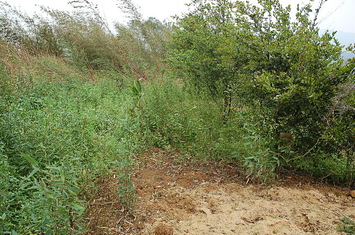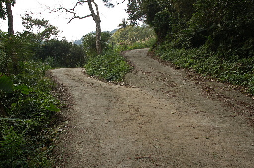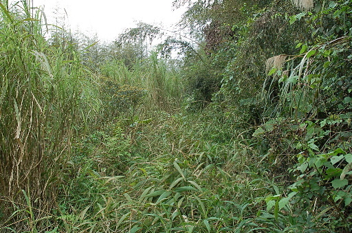 田寮山舊登山口,位於產道轉彎處,山路仍在,但毫無路條,應該已久無人行。續前行。H494m |