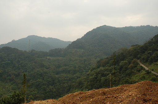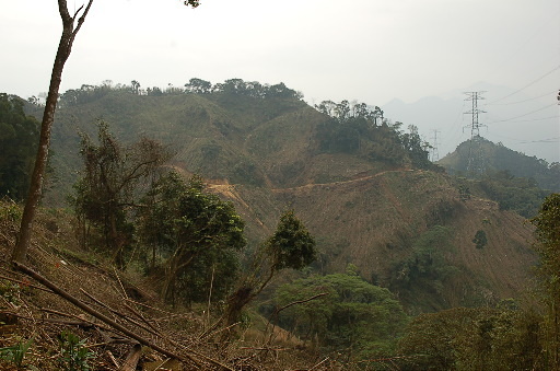 水泥路底,附近有電塔157(天輪-龍潭線),續行轉為泥土產道。眺望薯園山。H629m |