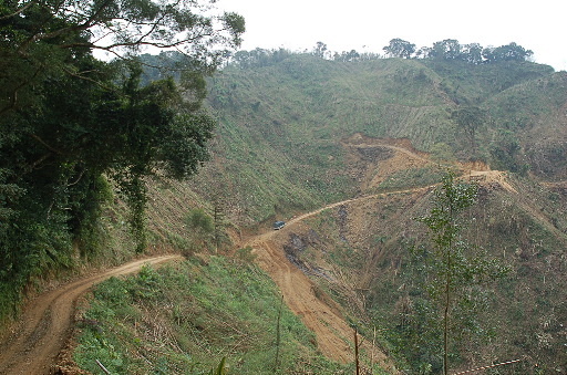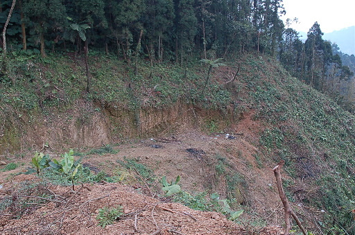 稜線山路入口,只見一個登山路條,可接薯園山、毬子山之間的稜線山路,登薯園山較慢,不取。這條泥土產道原本應該只是滿山竹林中的保線路,近年來滿山的竹林都被砍倒,持續整地,山坡陡峭,水土保持狀態堪慮。H621m |