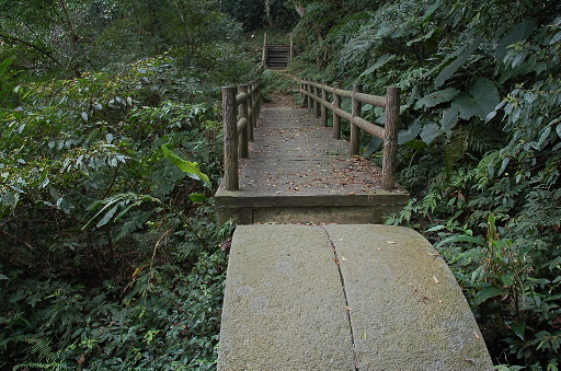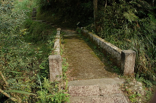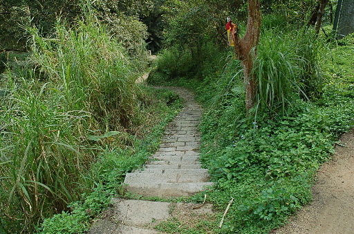 鐵門過後叉路,直行往樂善堂,右側石階步道卻無標示,但可見糯米橋就在不遠處,往探再回。H358m |