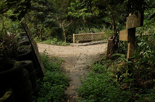 拱橋叉路,左側亦可通人文生態館,但鐵門封閉,續前行。H462m |