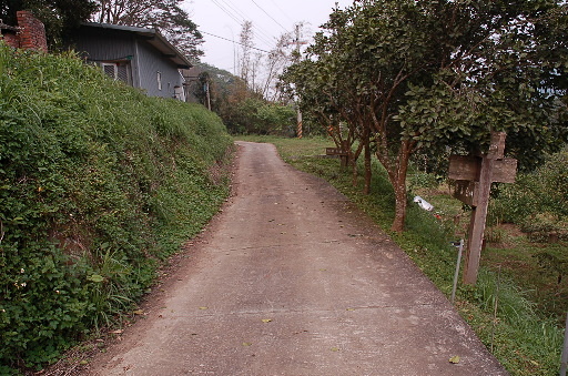 四叉路口,左下應該是主線產道繞上來,右側有間民宅,取右循主線產道續往上。H561m |
