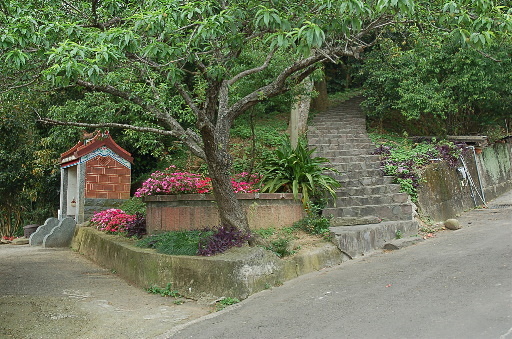 石砌小伯公廟,離入口約10公尺而已,續下小段之後往右一段再左轉往下,有點迂迴,注意路條。 |