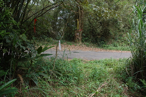 回到伯公叉路,果然不太顯眼,剛才沒有注意到這個往左下的山路入口,出果園後還沒到民宅之前。H353m |