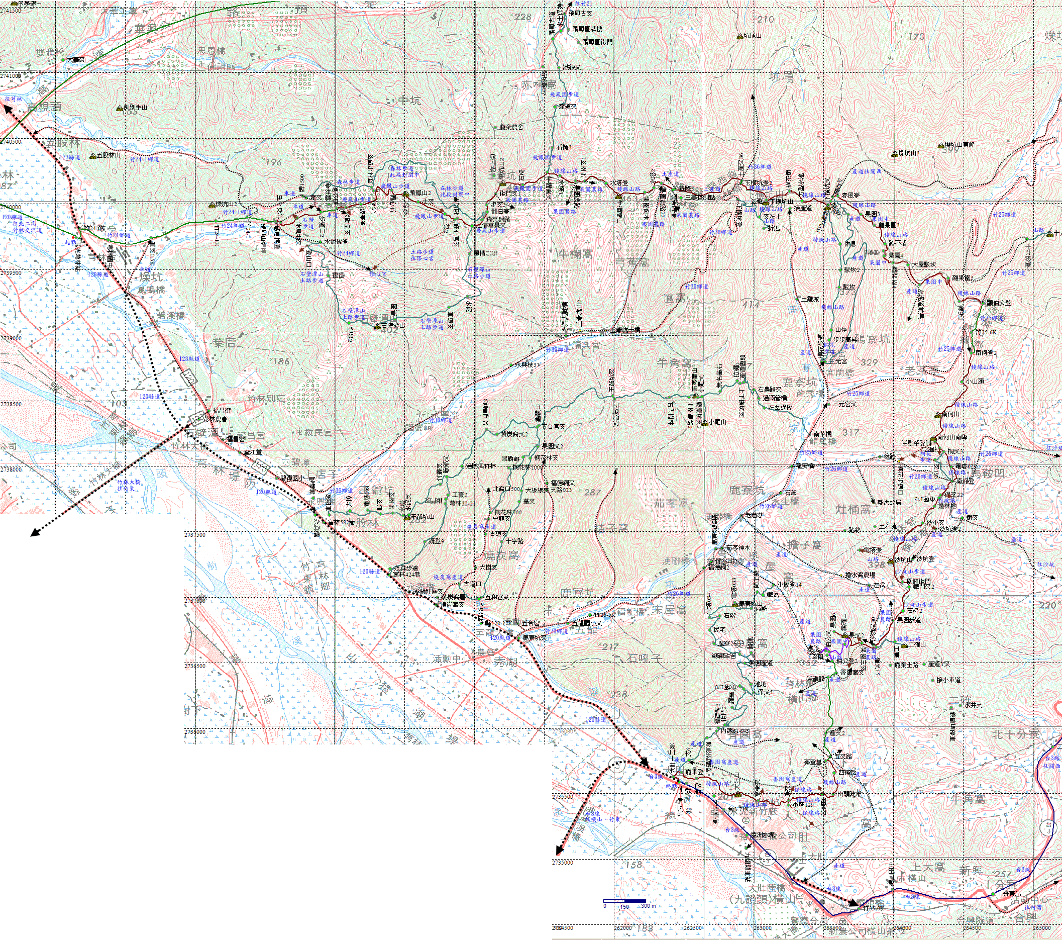 義確山,380m,省府地政處測量局三等控制點S189。基石座標處剛好是另一座果園水泥路最高點,不是山頂,且找不到基石,有點懷疑座標是否有誤?在附近來回搜尋皆無所獲,只好放棄。H400m |