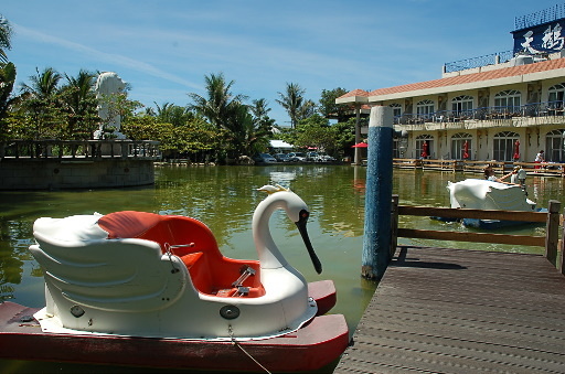 天鵝湖飯店,餐後在飯店內閒逛殺時間。飯店裡真的有兩個小湖,一個有免費的天鵝船可搭,一個有真的天鵝在裡面徜徉,亦可免費划船。有些房間就緊鄰著湖邊,感覺還不錯。參觀一圈之後,換裝到游泳池、冷泉池內戲水。H29m |