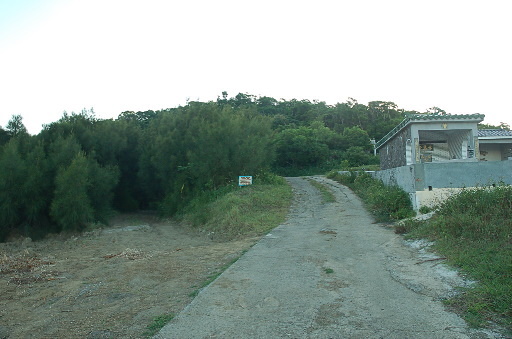 過密林,路徑完全被馬櫻丹灌木所掩蓋,靠著老舊的路條才能知道這裡有路,硬闖而過,還好只有幾公尺較難走而已。後續又是雜草叢生的草地區。展望不錯,可遠眺核三廠、貓鼻頭。不久再度進入樹林裏面,山徑變得清晰好走。H176m |