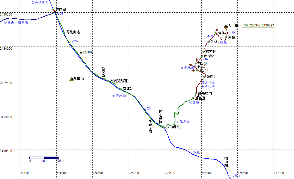 回到台26線大山母山叉路。H28m |
