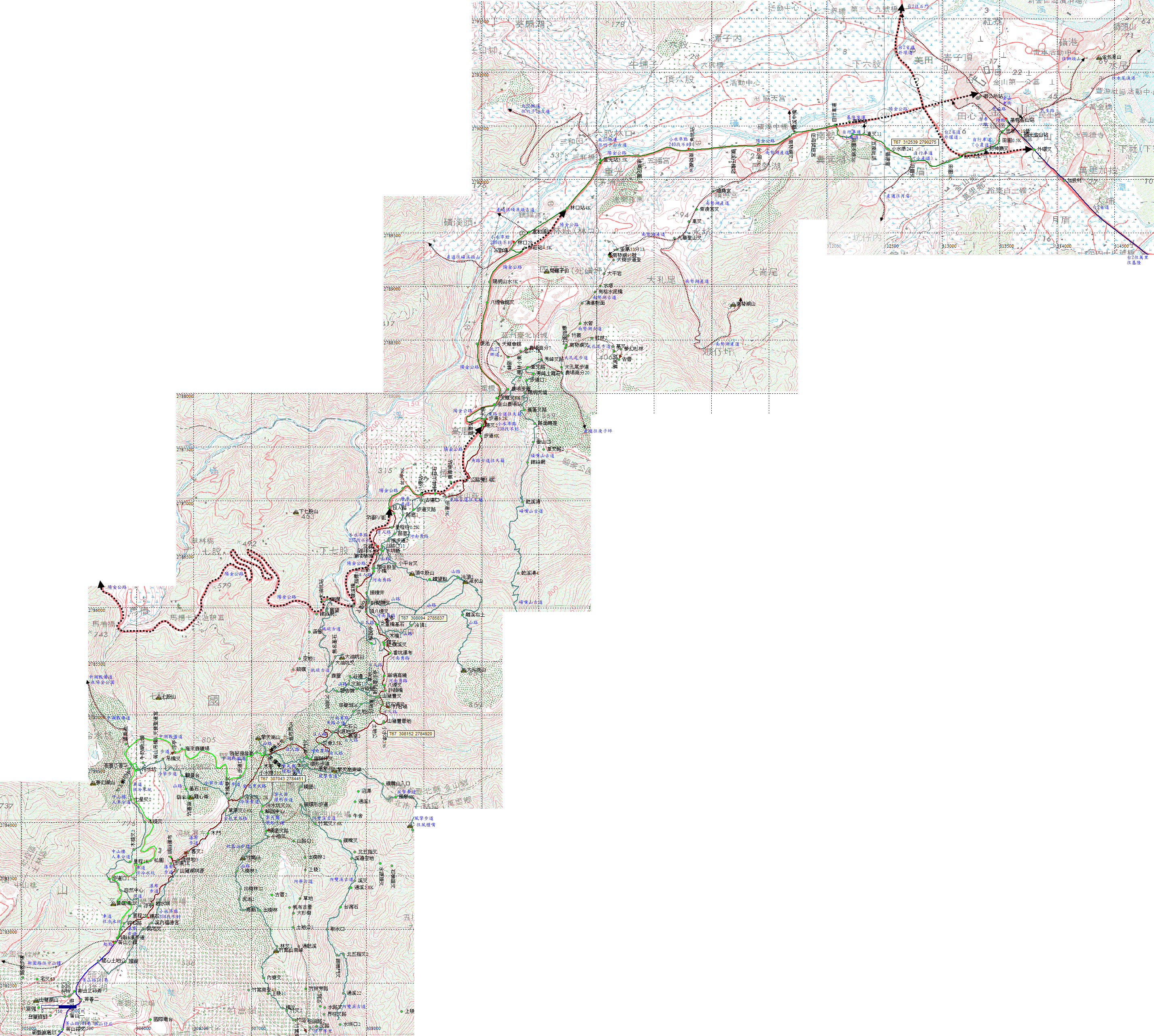 嶺腳坪叉路,直行為日人路,左下為河南勇路,殊途同歸,直行。路口日人路步道圖上標有細部的小地名。H714m |