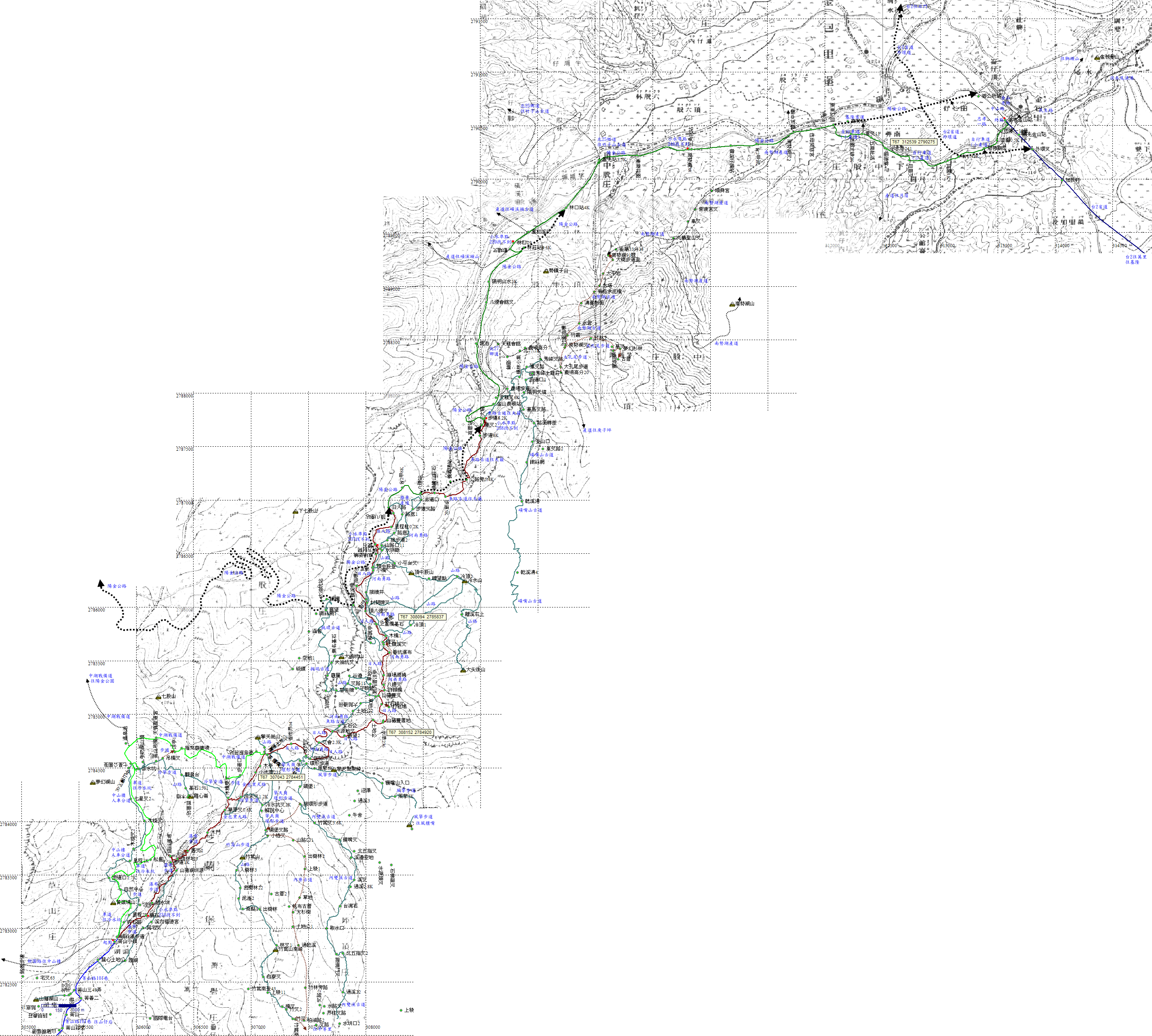 二層坪叉路,直行為日人路,右下為河南勇路,殊途同歸,直行。H669m |
