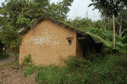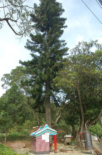 湳底土地公,設有台中縣珍貴老樹指標,小廟旁有兩棵大樹,一為榕樹,一為南洋杉,不知所指為何?H256m |