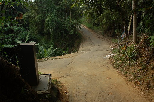 第二段步道出口,接水泥路底,取左循水泥路往下。H386m |
