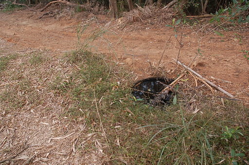 第二次接上大土路,取右往民宅方向。這座民宅養了好多隻黑狗,狗多勢眾很兇悍,因為要留意狗而錯過了山路入口,幾乎快走到民宅邊了才發現偏離GPS航跡,退回找路。H91m |