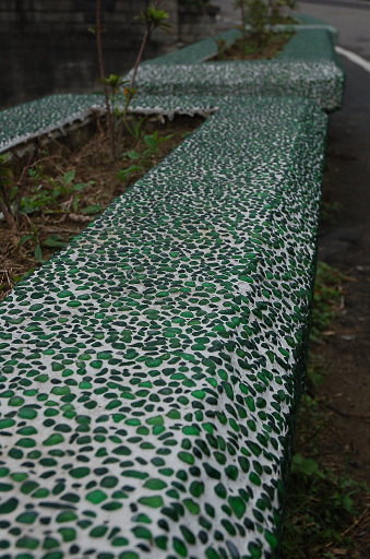 續行,取右往新埔。附近為新埔鎮寶石里,路旁花圃點綴滿寶石。 |