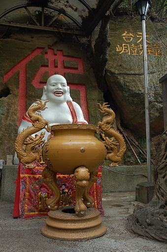 不動明王寺,位於幽雅路杏林巷,建於1920年代,是旅館星乃湯經營者佐野庄太郎為祈求生意興隆而興建的。不動明王供奉於石窟中。廟前有極為特別的淨手台,昭和五年五月建之,靜岡縣磐田郡中泉町...。廟右有個水量不大的瀑布,左側供奉青龍明神,右側供奉大蛇明神,昭和八年五月吉日建之。H145m |