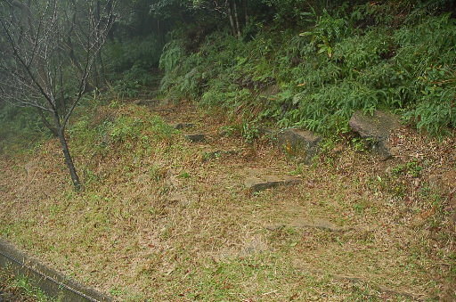 五指山步道出口,位於北28鄉道19.2K附近,五指幹227電線桿,此後就沒有石階步道了,但左側稜線附近仍有好走的山路可走,取左上稜。H556m |