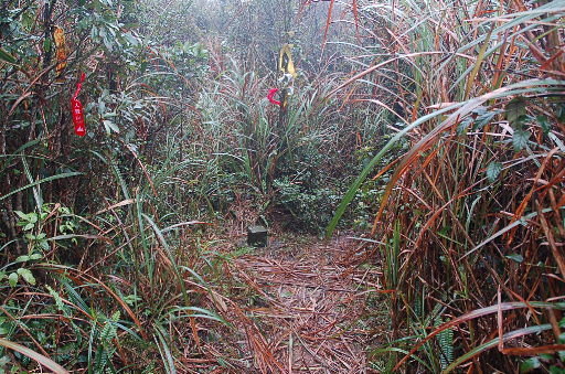 雙溪溝古道叉路,左下為雙溪溝古道往風櫃嘴,右下離五指山公路不遠,取右下再左轉往梅花山。H564m |
