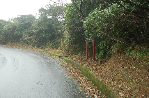 國軍公墓叉路,直行往風櫃嘴1.5K,右上往國軍公墓、五指山,取右。一路循主線車道上稜。H628m |