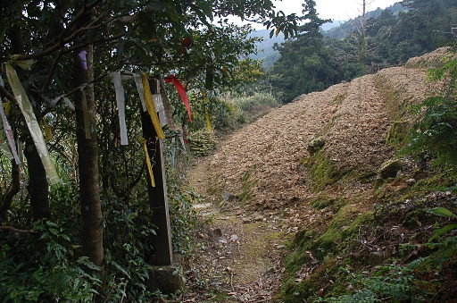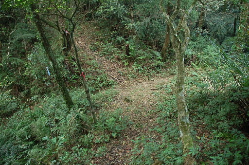 出發,取左先登鬼子瀨尖,循小徑繞往真正的鬼子瀨尖步道口,此路繞著民宅區後方而行,沿途有不少叉路,請留意登山路條導引。 |