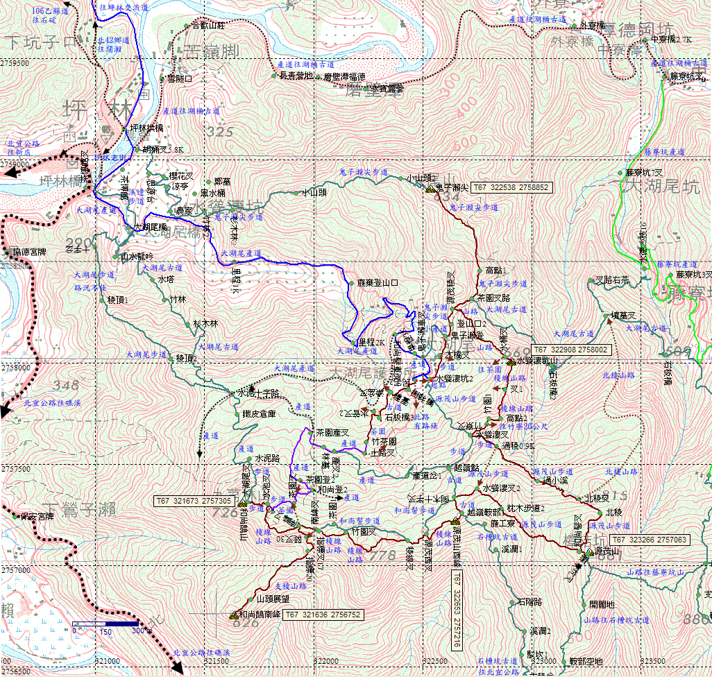 鍾墓,再遇茶園,橫切而過,往大湖尾聚落靠近。H551m |