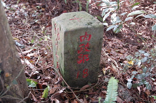 景美溪上游水源保護區界12,台灣省政府76年設立。水泥界樁位於步道旁。H486m |