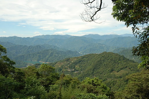 觀景點,山路轉折處,可俯瞰翡翠水庫鯉魚潭、鱷魚頭。這裡的風景還不夠好,決定續往下探。H415m |