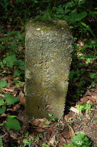 青潭水源保護區界12,內政部68年七月所立。基石剛好就在產道最高點旁邊兩座墓園的後方。H490m |