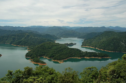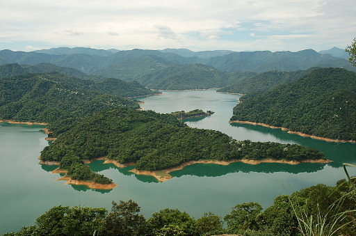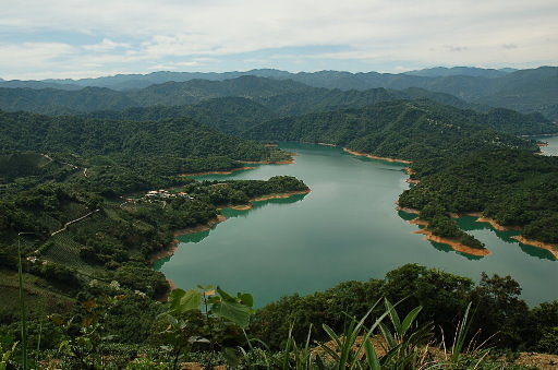 俯瞰翡翠水庫鯉魚潭、鱷魚頭。另可看到鷺鷥潭。循著茶園往下,展望就沒那麼好了,偏右找下往竹坑之路。 |