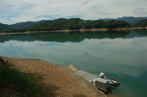 翡翠水庫邊簡易碼頭,有舢舨數艘,這裡可以眺望鷺鷥潭美景,鱷魚頭就在對面。休息時望見翡翠水庫的巡邏艇出現,不曉得會不會被誤當偷釣者?原路退回。H183m |