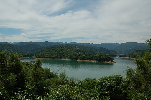 竹坑叉路,直行土路往潭腰,右下山路往竹坑約30分、觀景點(水庫風光)讚。叉路口就可看到翡翠水庫,選擇取右,下到觀景點看看。H432m |