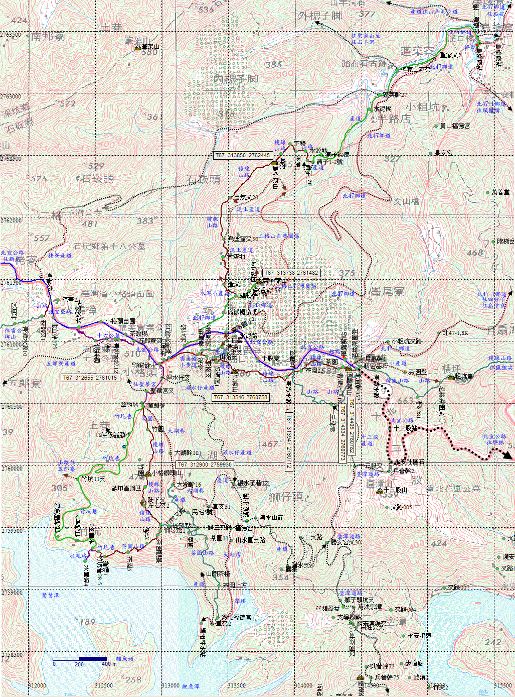 回到翡翠水庫叉路,開始循竹坑巷爬回小格頭。H204m |