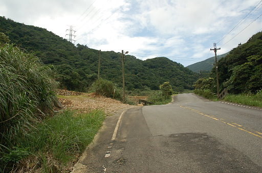 大鵬國小叉路,接上員潭路,左往磺潭社區、金山財神廟,右往金山,登加投山取右較近,但今天我想走迂迴路線,取左。H14m |