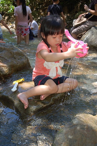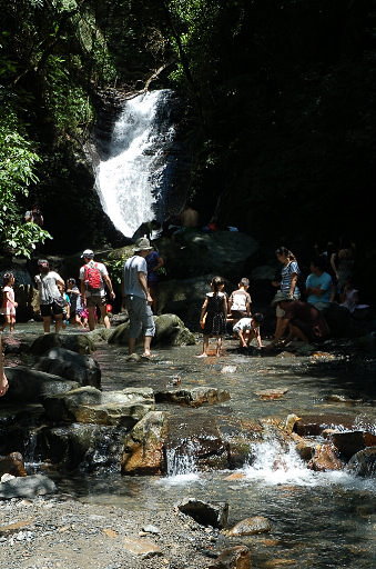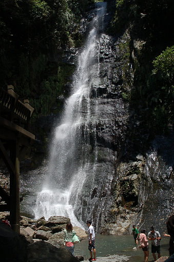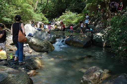 礁溪五峰旗,除了有三層的瀑布之外,溪流沿途有很多不錯的戲水處,多有遮蔭,因此遊客眾多。H80m |