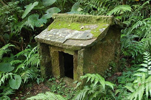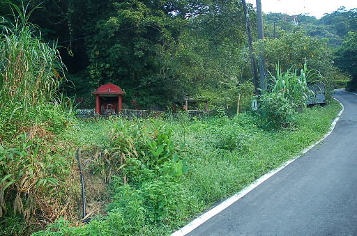 聚和宮,古老的石砌小土地公廟,建於明治辛亥年(1911年),位於崩山一號橋再往上約30公尺的路左,漆成紅色的廟身頗為顯眼。H125m |