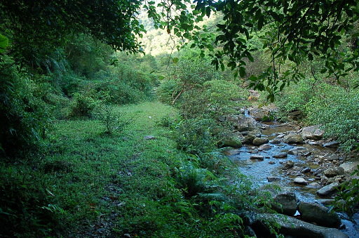 出發,古道一開始就是一座跨越崩山坑溪支流的小水泥橋。稍後過牛欄開始進入一階階的梯田草地,沿途風光明媚且路況極佳。H121m |