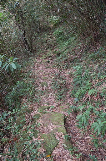 續行,崩山坑古道的路況再度轉佳,改成腰繞柑腳山稜線東側。 |