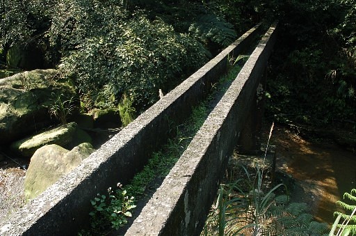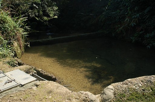 水管路底,取水口,水很乾淨可惜不能玩水,以免汙染水源。續行,稍退回約十公尺,有小徑往上,很快就接上第二層水管路,路況仍佳。H136m |