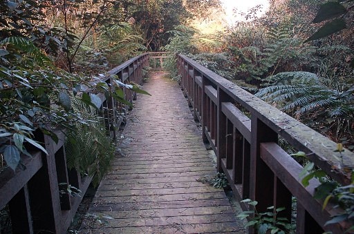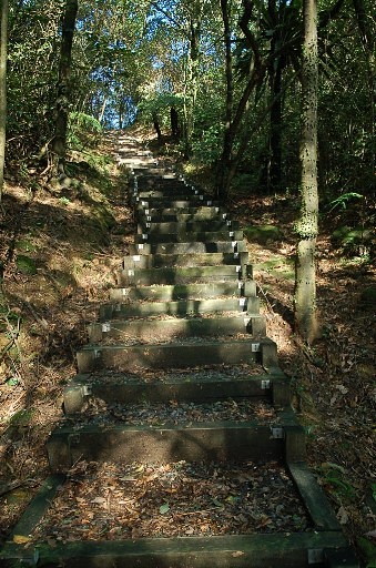 續行,循枕木步道往下,較緩處則保留原始土路,路況極佳。 |