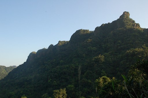 續行,取右循稜往三爪坑山,稜線山路路況還好。偶有山林投叢,有時低繞,有時直接穿越。空隙中偶可眺望左邊的獅子嘴奇岩,右邊則是三爪子坑山。 |