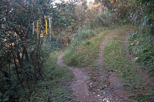 接回正路,續前行為緩下的廢棄寬路,雜草叢生,路條零星。 |