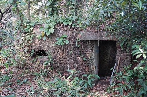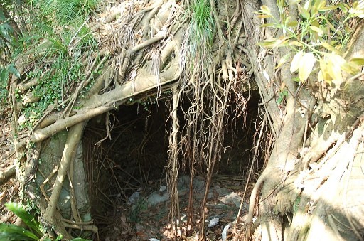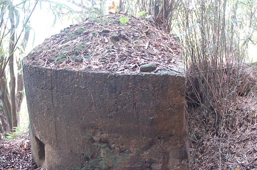 北稜第三座碉堡,半圓形,離涼亭不遠,整座碉堡亦為樹木所盤據。H101m |