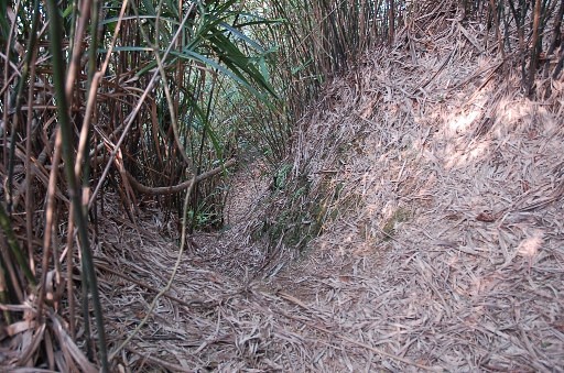 回到陡下稜線的小路,下稜之後進入箭竹區,不難通行,抓方向往下。 |
