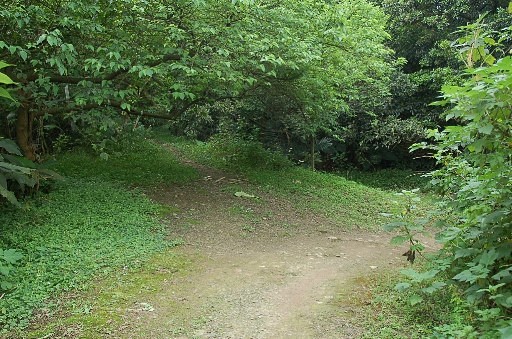 碉堡叉路,直行不遠處可見一座碉堡,右路則很快就回到獅球嶺東砲台山叉路,直行。H102m |