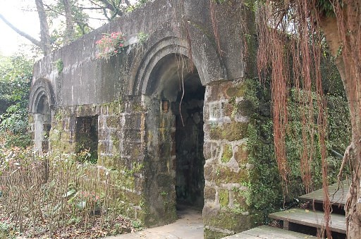 獅球嶺東砲台,即法軍所稱的鷹巢砲台,一座被老榕樹盤據的石砌庫房是主要的遺跡,其建築式樣與獅球嶺主砲台類似。H151m |
