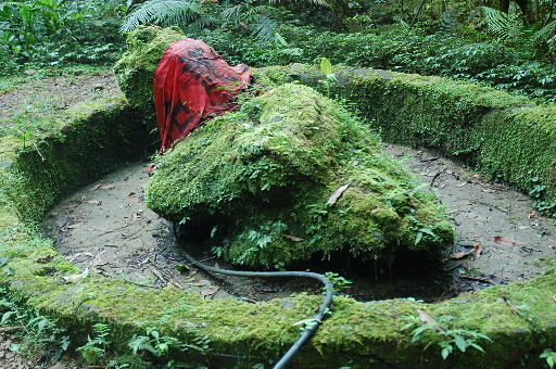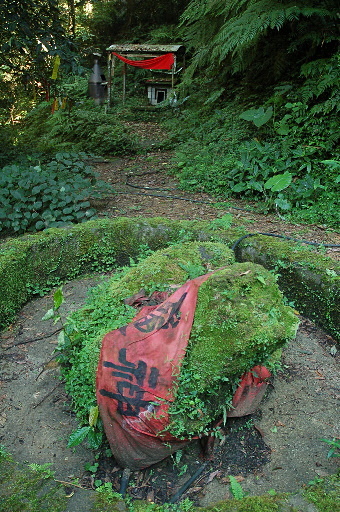 乾坑石龜將軍,奇特造型的石頭上有『佑護龜神』紅布。旁邊有貼著磁磚的小土地公廟,反而有點變成配角的感覺。休息。H236m |